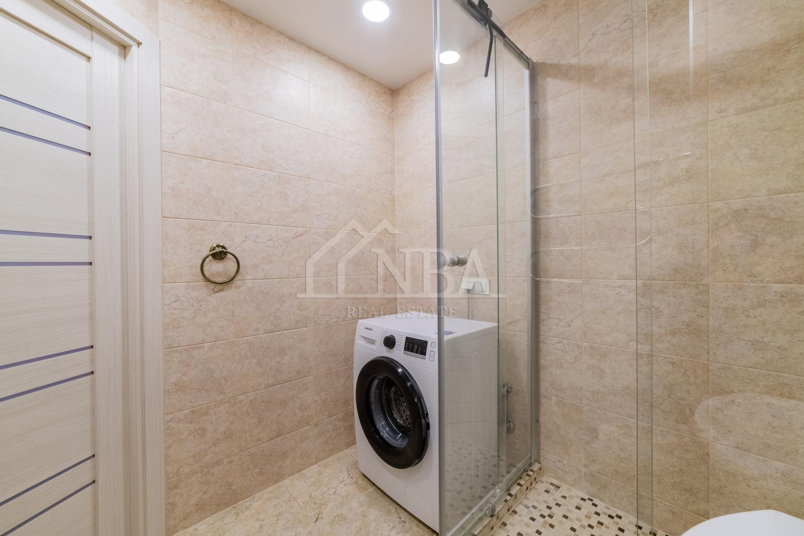 – Tualetas ir vonia bendra patalpa, išklijuota akmens masės plytelėmis, nauja santechnika, nerudijančio plieno gyvatukas.